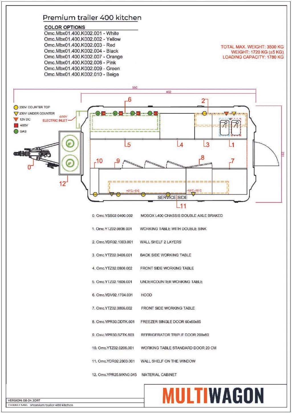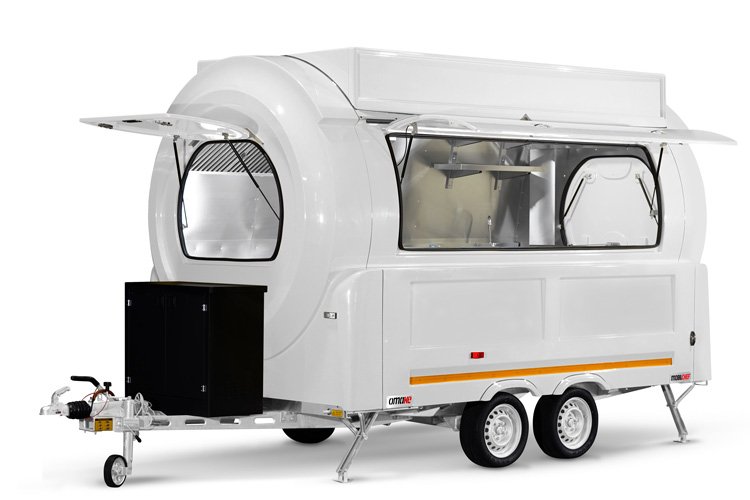 Το Premium trailer 400 φαίνεται εξίσου ελκυστικό με το Eco, αλλά προσφέρει περισσότερο χώρο και δυνατότητες. Αυτό το μοντέλο είναι επίσης μεγαλύτερο από το Premium trailer 320, διευκολύνοντας ακόμη περισσότερο την εξυπηρέτηση μεγάλων ομάδων ατόμων. Είναι ιδανικό τόσο για την προετοιμασία φαγητού όσο και για το σερβίρισμα ποτών ή διαφημιστικού υλικού.
